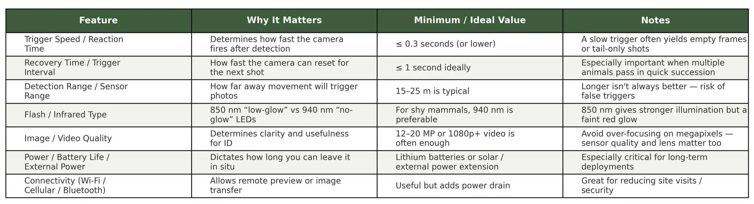 Modern trail cameras come with a dizzying list of specifications. But in practice, only a few genuinely affect your results: