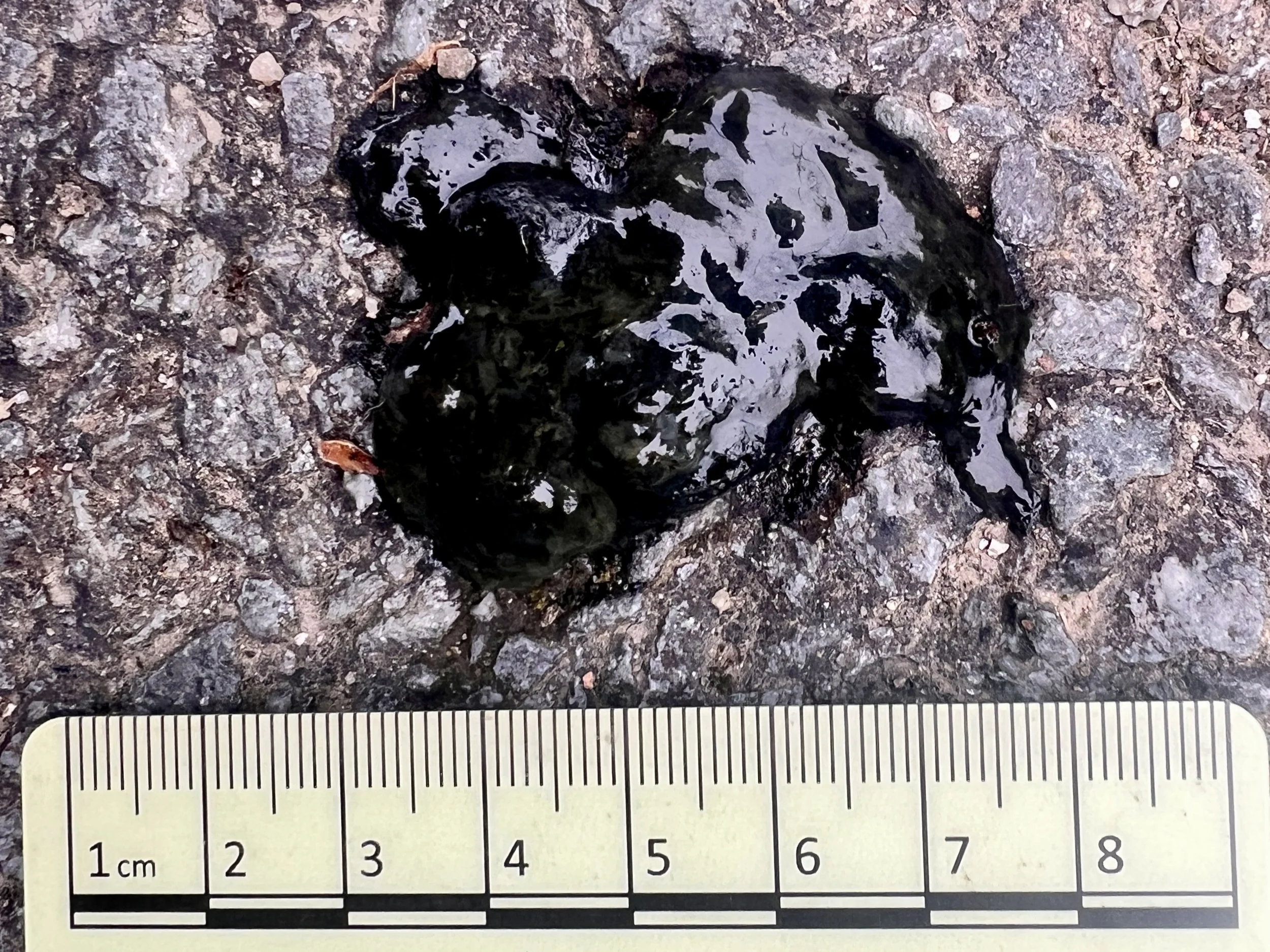 Surroundings: Riverside, low traffic, smooth stones with older scats nearby.